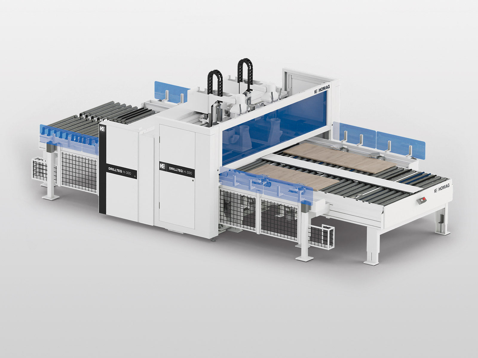 The 6-side drilling series DRILLTEQ H-330 impress with speed and precision - in workpiece handling as well as in machining. Every drilling and milling operation is set with extreme repeat accuracy. The workpiece surfaces are perfectly protected despite fast processing speeds. The possibility of processing two workpieces at the same time results in double efficiency and the versatile connection options of the machine bring high flexibility. With our single-channel and double channel 6-sided drilling series, we provide the perfect solution for your wishes and requirements