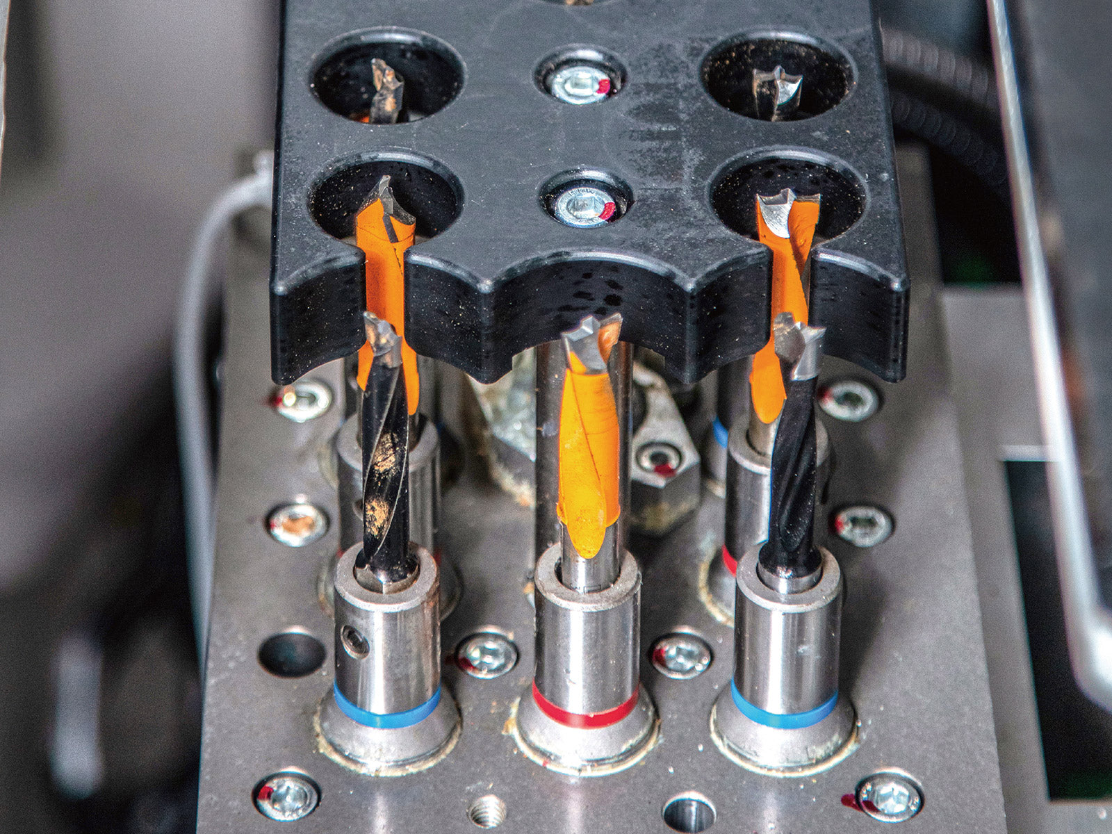 - CNC-controlled clamping system on both sides enables quick and precise drilling with no setting times2 CNC-controlled clamping devices ensure permanently firm and precise positioning of the workpieces – regardless of the speedwoodWOP software