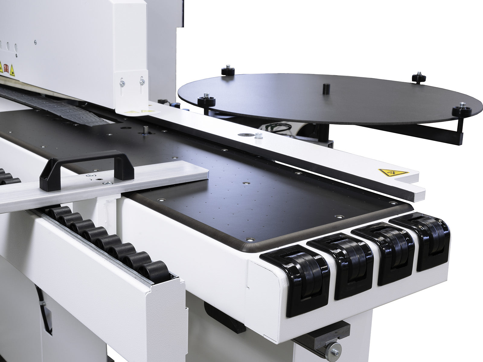 The EDGETEQ S-380 edge banding machine features a comprehensive range of units, high feed speeds and high-performance motors. The glue application system allows you to switch easily between two colors or glue types (EVA, PU). What's more, the multifunction profile trimming offers rapid processing of radii and longitudinal edges. For frequent material changes, the multi-stage trimming unit and multi-stage scraper can be used. It offers you maximum flexibility.